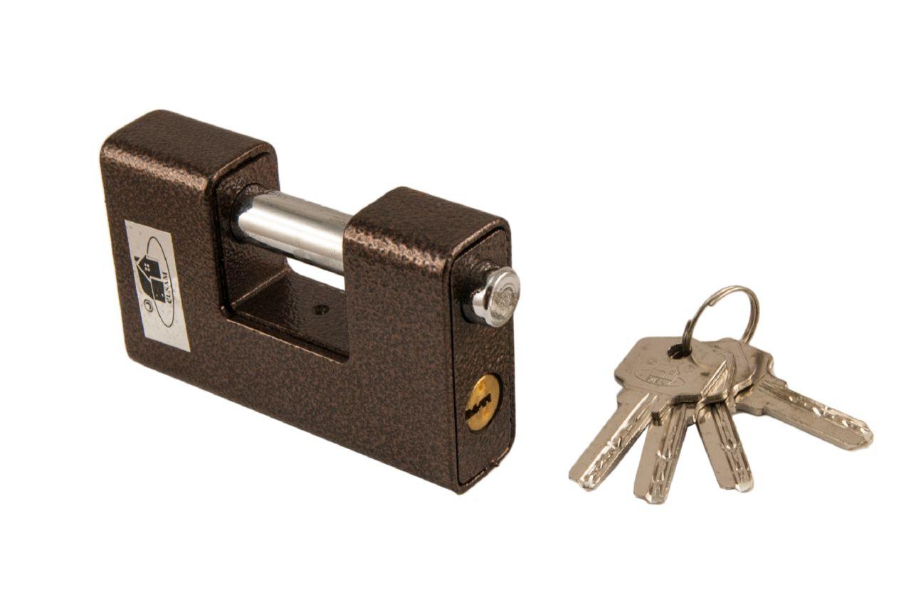 Замок навісний FZB виготовлений зі сталі покритий антикорозійним покриттям, має П-подібний литий корпус шириною 80 мм. У комплекті з замком три лазерних ключа.