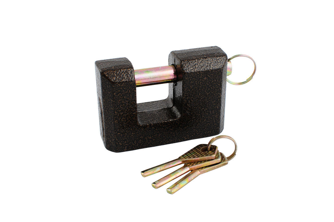 Замок навісний FZB виготовлений зі сталі покритий антикорозійним покриттям, має П-подібний литий корпус шириною 80 мм. У комплекті з замком три ключа.