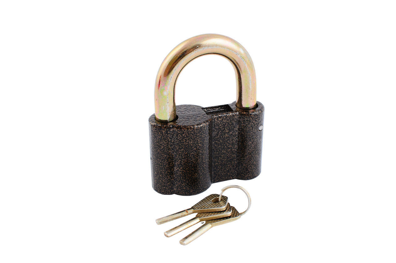 Замок навісний FZB має литий корпус шириною 80 мм, корпус має округлу форму. У комплекті з замком три ключа.