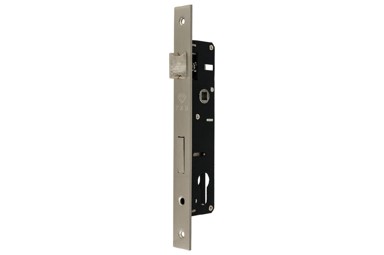 Замок врізний FZB - компактний і надійний замок для міжкімнатних або вхідних дверей із лицьовою планкою розміром 85×25 мм. Модель має сатиноване нікельоване покриття (SN), яке забезпечує привабливий вигляд і стійкість до зношування та корозії. Завдяки універсальній конструкції замок легко встановлюється та сумісний з більшістю стандартних ручок і циліндрів. Оптимальний вибір для житлових, офісних або технічних приміщень, де потрібна практичність і надійність у щоденному використанні.