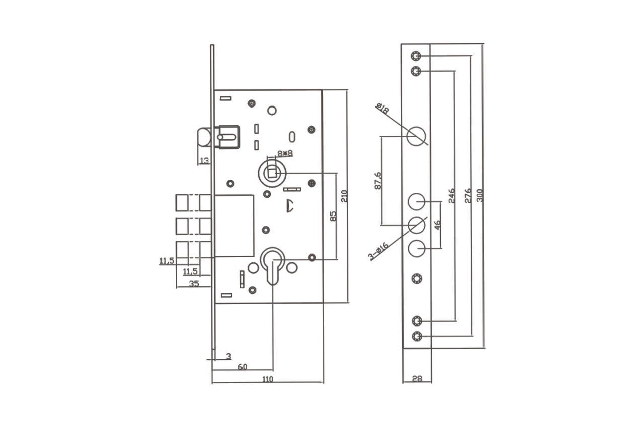 Врізний замок FZB 85 мм 252R — надійний замок для дверей із міжосьовою відстанню 85 мм. Модель виготовлена з міцного металу, що гарантує довговічність та стійкість до корозії. Замок оснащений ефективним механізмом замикання, який забезпечує безпеку та комфорт використання. Ідеально підходить для вхідних і міжкімнатних дверей у житлових та комерційних приміщеннях.