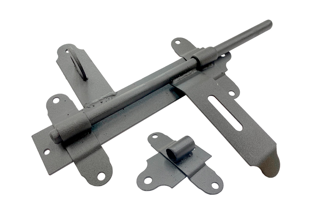 Запор дверний KS-UKR "Ранчо" надійна та міцна фурнітура для фіксації вхідних дверей, воріт, хвірток або господарських споруд. Завдяки широкій основі та подовженому ригелю конструкція забезпечує високий рівень безпеки та захисту від несанкціонованого відкривання. Запор виготовлений із сталі та покритий зносостійким декоративним шаром «оксамит» (матова порошкова фарба), що захищає від іржі та корозії. Конструкція передбачає отвір під навісний замок, що дозволяє посилити захист при необхідності.
