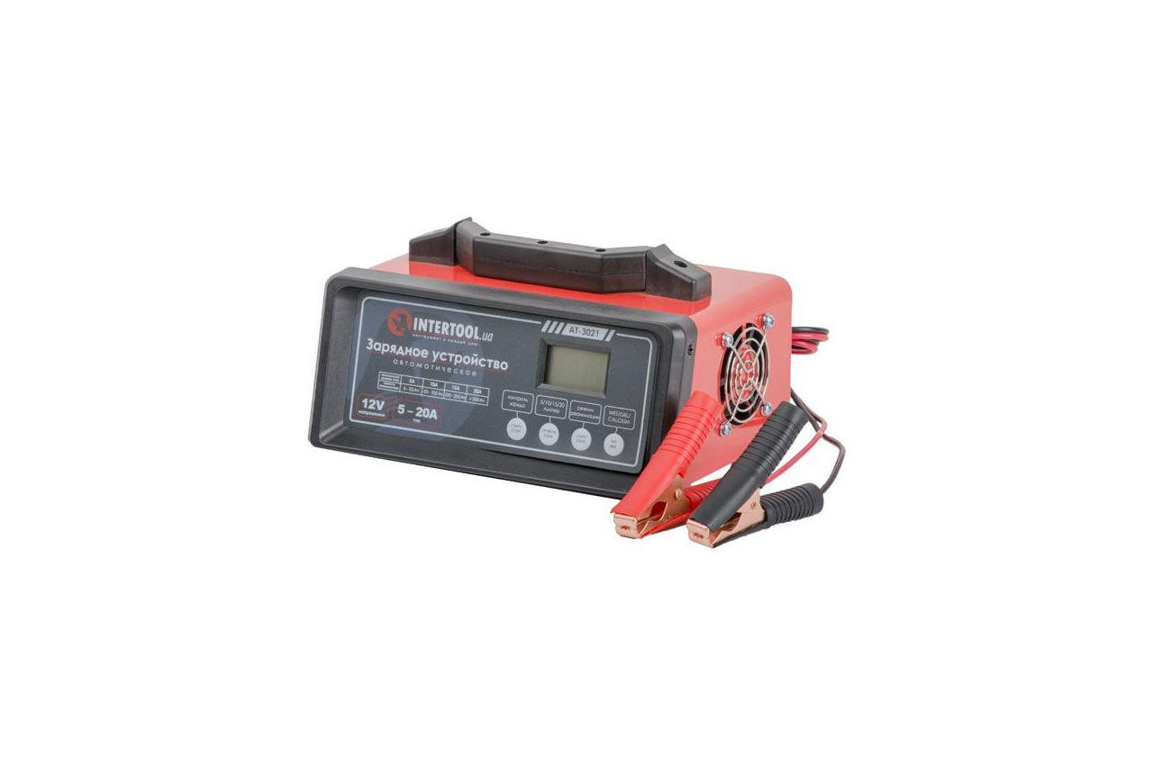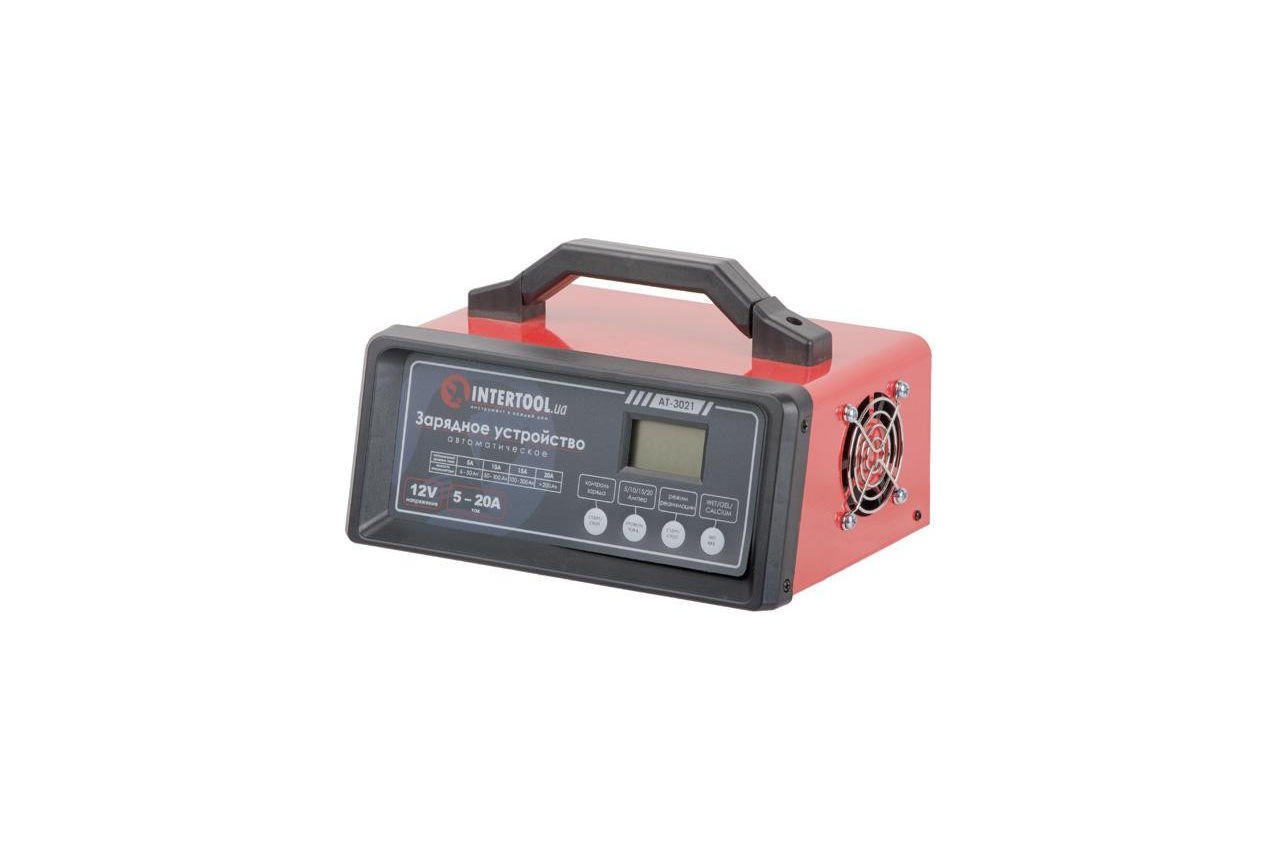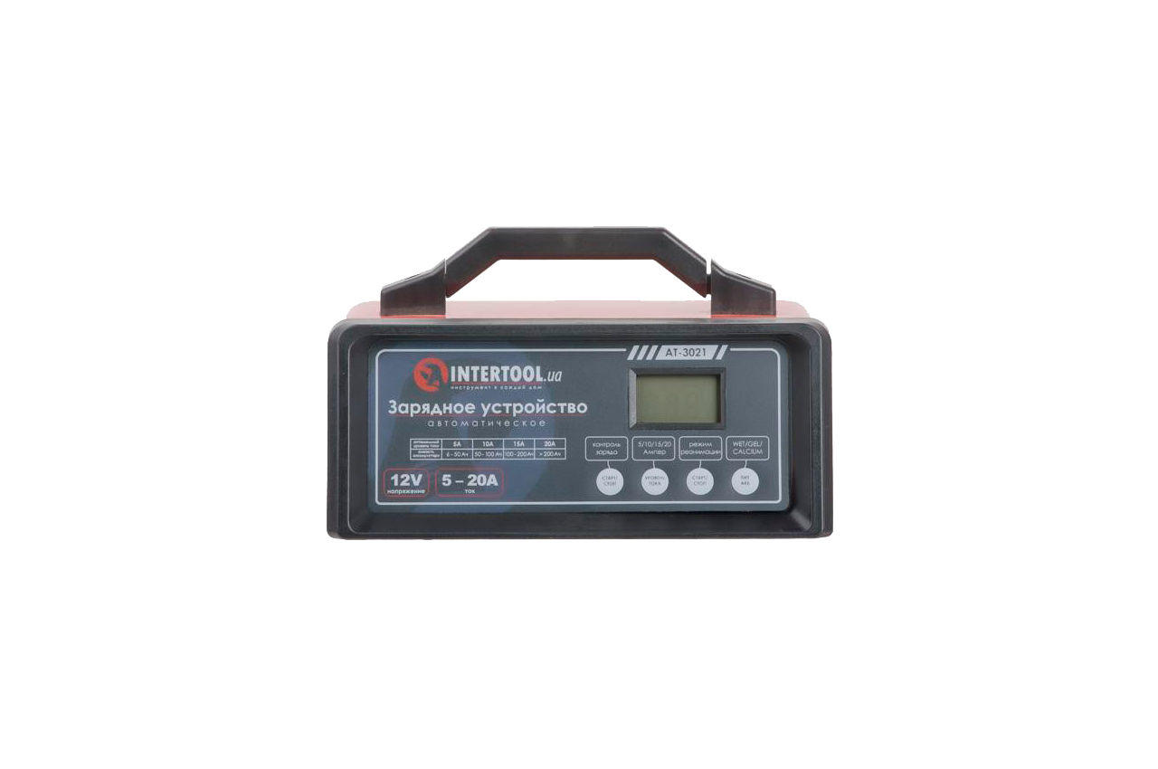 Зарядний пристрій AT-3021 - інтелектуальне, управляється мікропроцесором і системою з багатоступеневим циклом зарядки. Це зарядний пристрій підходить для 12В батарей. Інтелектуальна система діагностики стану і рівня заряду АКБ дозволяє не тільки підібрати оптимальний режим зарядки, а й підтримувати батарею в стані повного заряду. Електронний захист від перевантаження, короткого замикання і невірного підключення (зворотна полярність) вбережуть Ваш акумулятор і зарядку від пошкоджень і поломок. Режим реанімації (ДЕСУЛЬФАТАЦІЯ) дозволяє продовжити термін служби Вашого акумулятора і відновити його ємність, яка була втрачена в зв'язку з осіданням солей сірчаної кислоти. Зарядний пристрій має повністю ізольовані клеми. ЖК-дисплей показує напругу батареї і процес зарядки. Габаритні розміри: 225 * 140 * 95; особливості: Режим десульфатаціі; <br> ЖК-дисплей; <br> Захист від КЗ; <br> Захист від неправильного підключення; <br> Захист від перегріву ;; Напруга: 12 В; Потужність: 160 Вт; Напруга живлення: 230 В; Постійний вихідний струм: 5/10/15/20 А; Ємність акумулятора: 6-280 Ач