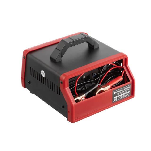 Зарядний пристрій AT-3030 призначений для заряджання 12В свинцево-кислотних акумуляторних батарей. Струм зарядки до 6А дозволяє зарядити найзатребуваніші акумулятори ємністю до 60 Ач. Особливості Активне повітряне охолодження Можливість регулювання струму заряду. Заряджає свинцево-кислотні акумулятори, ємністю від 4 до 60Ач. Захист від перегріву, перезарядки, короткого замикання та неправильної полярності. Відсік для зберігання кабелю та клем Захист від перевантаження, короткого замикання та неправильного підключення (зворотна полярність), убережуть ваш акумулятор та зарядку від пошкоджень та поломок. Зарядний пристрій має повністю ізольовані клеми та амперметр, для зручного контролю струму заряджання. За допомогою зручного регулятора на корпусі ви також можете регулювати силу зарядного струму. Для зручності зберігання на звороті пристрою розташовується спеціальний відсік для зберігання мережевого кабелю та клем. Прилад оснащений зручною ручкою для транспортування.