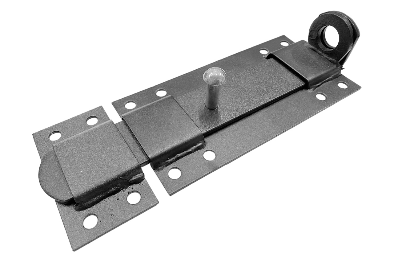 Засув дверний під замок KS-UKR — надійне та просте рішення для додаткового замикання дверей, хвірток, воріт або комор. Виготовлений із міцного металу, стійкого до корозії та механічних пошкоджень. Засув шириною 90 мм і довжиною 240 мм підходить для встановлення навіть в обмеженому просторі. Має отвір під навісний замок. Чудовий вибір для побутового та господарського використання.