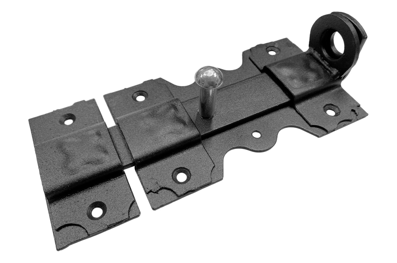 Засув KS-UKR "Орнамент" надійне та просте рішення для додаткового замикання дверей, хвірток, воріт або комор. Виготовлений із міцного металу, стійкого до корозії та механічних пошкоджень. Засув шириною 85 мм і довжиною 205 мм підходить для встановлення навіть в обмеженому просторі. Має отвір під навісний замок. Чудовий вибір для побутового та господарського використання.
