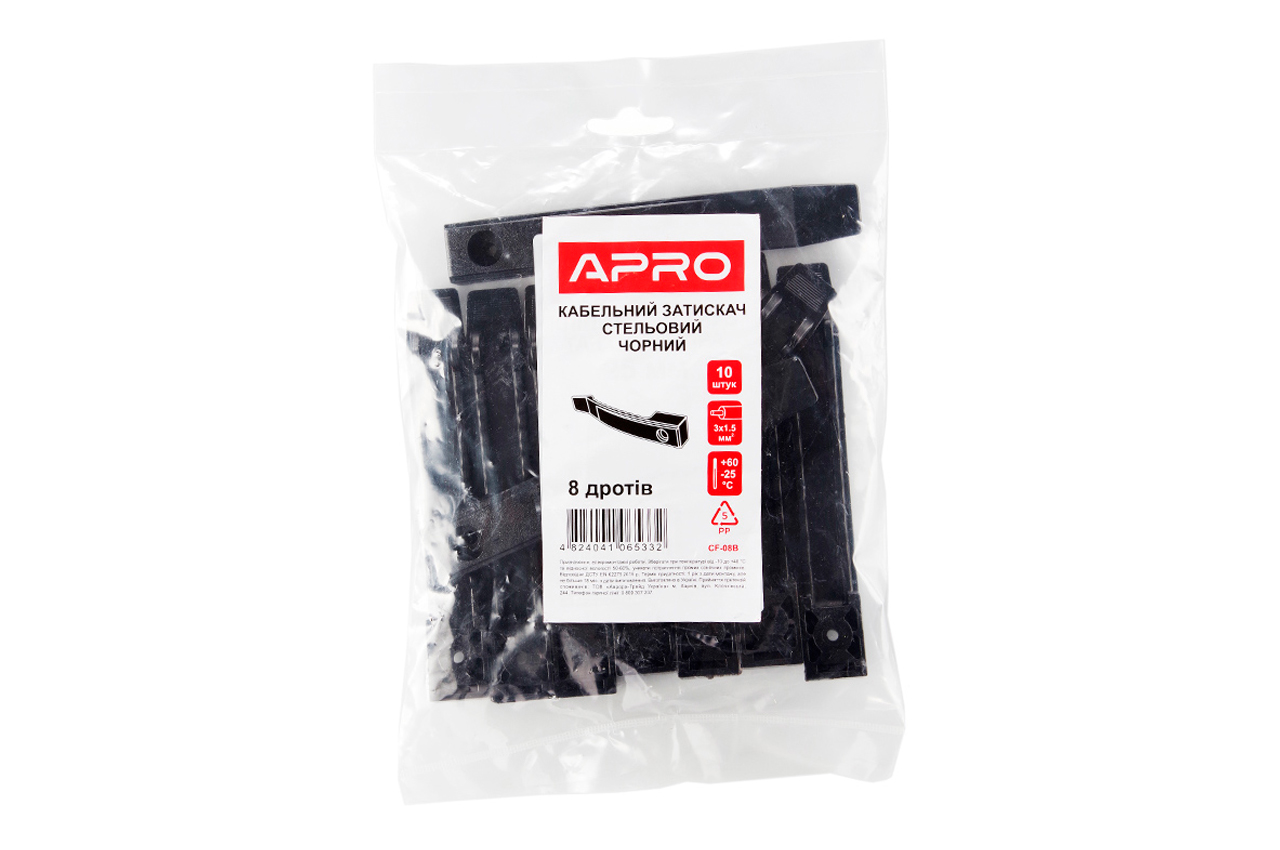 Затискач кабельний Apro - 8 дротів чорний (10шт)