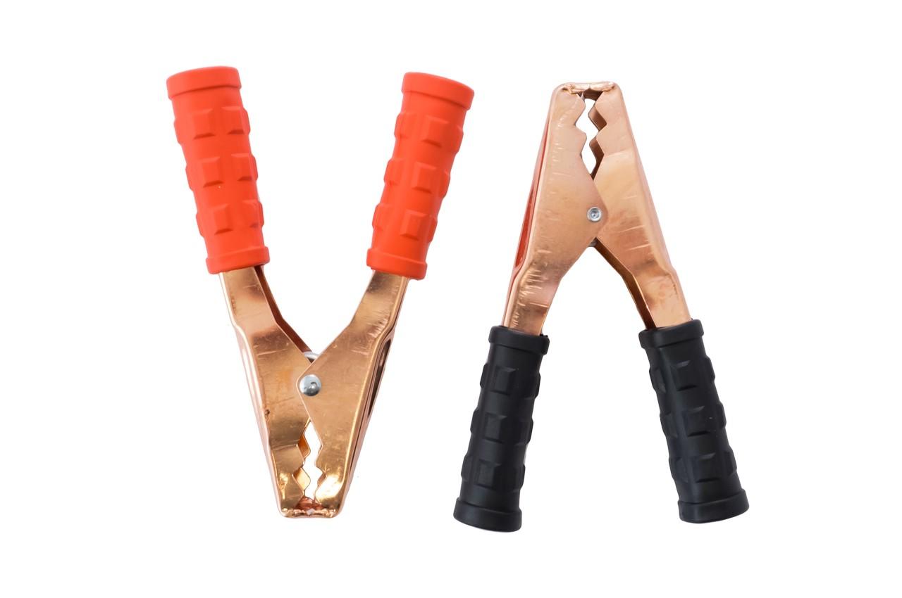 У наборі 2 затиску. Затискачі для клем акумулятора виготовлені з алюмінію зверху покритого міддю, довжина - 14 см, відстань між ручками - 9 см, обгумовані ручки червоного і чорного кольору. Червоний підключається до позитивної клеми АКБ, а чорний - до негативної.