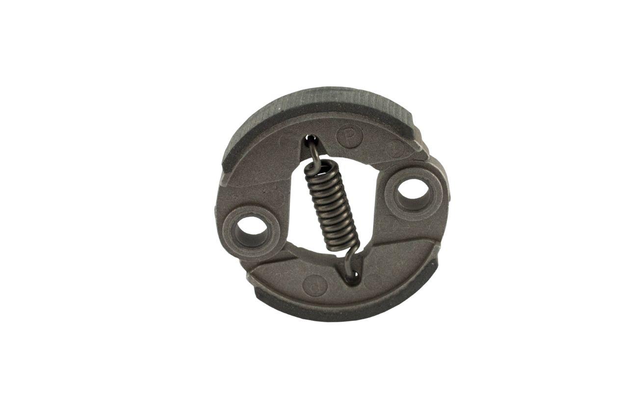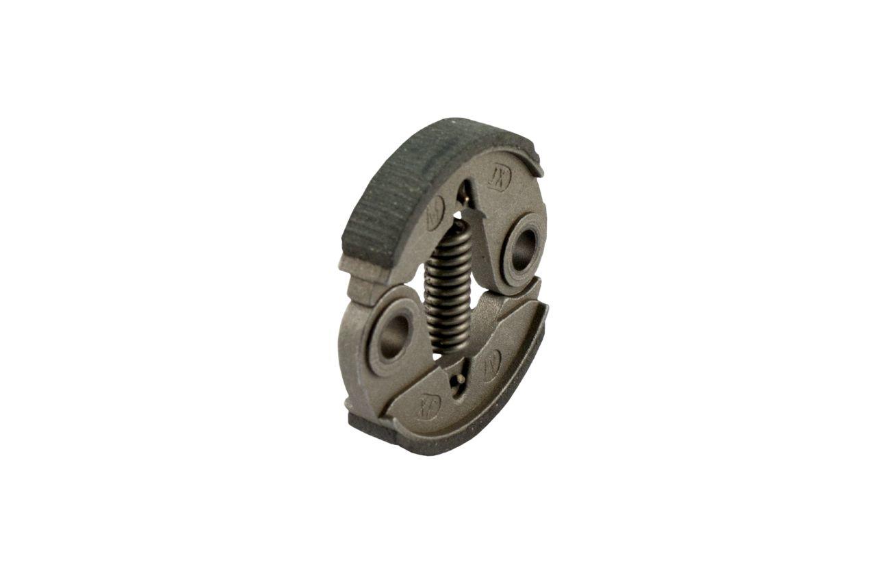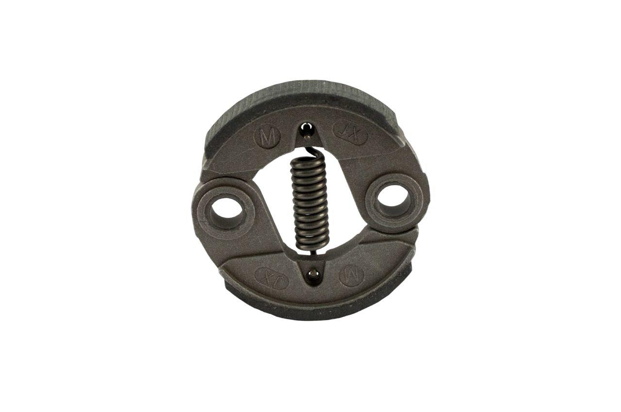 Муфта зчеплення бензотріммер з алюмінію. Діаметр зчеплення 74х76 мм, товщина 14 мм, діаметр отвору під болти кріплення 10 мм, відстань по центрам отворів 52 мм, пружина 12 витків (діаметр 11 мм).