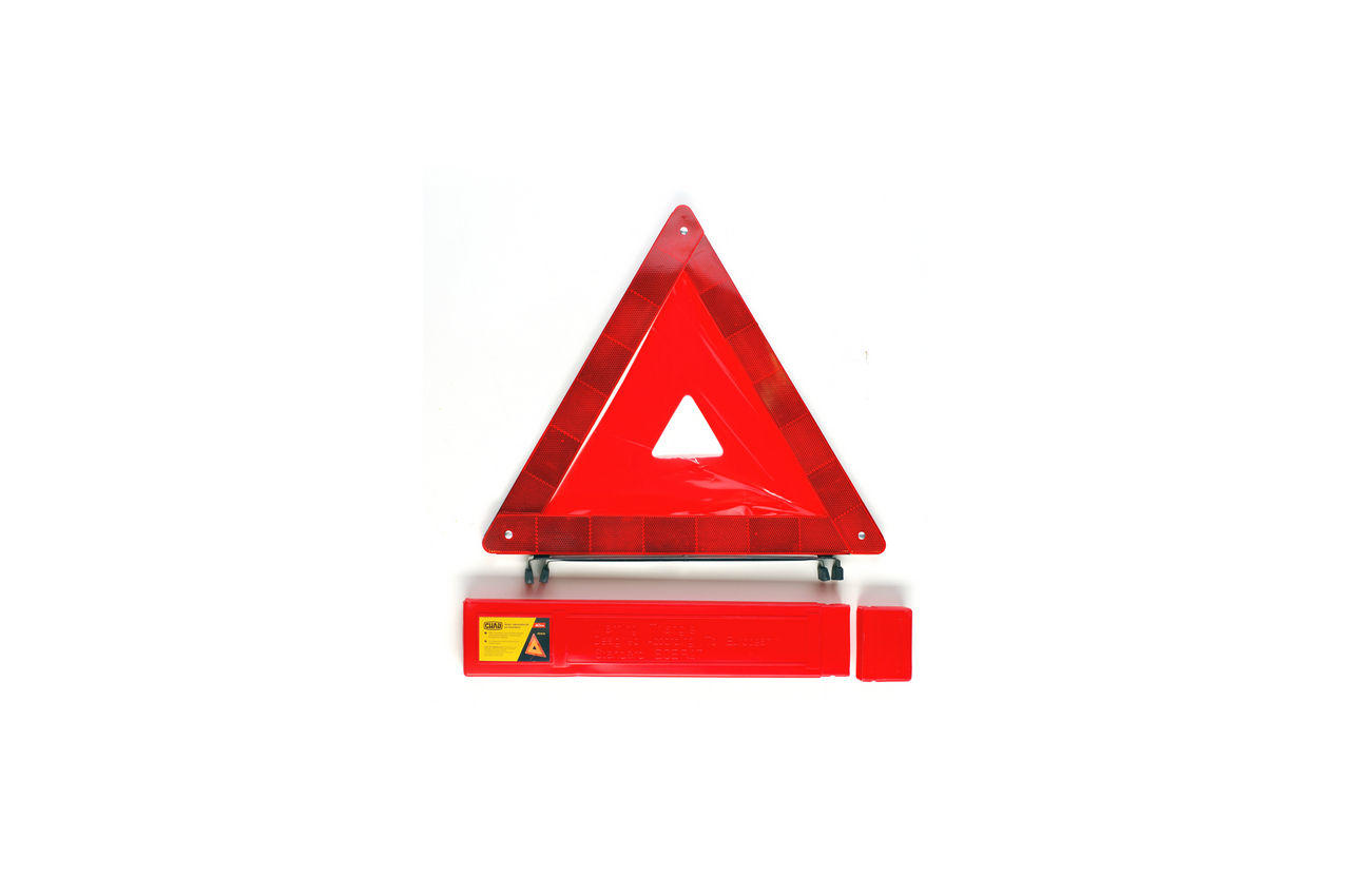 Знак аварійної зупинки. Трикутник червоного кольору з катафотнимі смугами, флуоресцентна поверхню, встановлюється на спеціальну підставку. Поміщається в пластиковий кейс і не займає багато місця. Освітлення: катафотние смуги, флуоресцентна поверхню