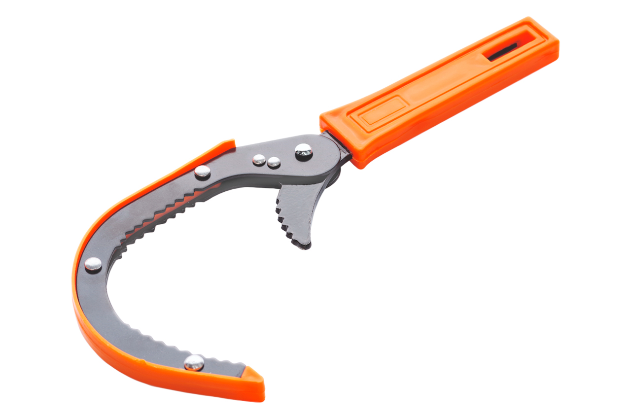 Ключ для зняття масляних фільтрів, Г-подібний. Матеріал рукоятки: пластик, маслобензостойкая. Матеріал: інструментальна сталь. Матеріал рукоятки: пластик, маслобензостойкая; Механізм: серповидний