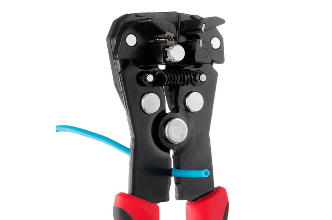 Знімач ізоляції (автоматичний стриппер) на сьогоднішній день став невід'ємним інструментом для електромонтерів і всіх майстрів, які працюють з проводами. Призначений для відрізання і зачистки багатожильних і одножильних проводів. Автоматичні кліщі для зачистки HT-7022 працюють з найпоширенішими перетинами проводів від 0.2 до 6.0 мм ². Ріжуть чисто, не пошкоджуючи внутрішні жили кабелю. Регулювання зусилля зачистки допоможе при роботі з крихкими проводами або жорсткої ізоляцією. Сталева конструкція знімача в поєднанні зі зносостійкими робочими губками зі сталі Cr12MoV, роблять інструмент міцним і довговічним. Зручні ручки з прогумованими вставками не ковзають в руці і гарантують комфортну роботу протягом тривалого часу. Особливості: Зносостійкі леза робочих губок; Автоматичне регулювання діаметра зачищають дроти; Регулювання зусилля зачистки; Чистий акуратний рез ізоляції, без пошкодження внутрішніх жив навіть тонких проводів; Різак для проводів з перерізом до 6 мм ²; Зручні прогумовані ручки. Перетин дроту: 0,2-6,0 кв.мм; Твердість за шкалою Роквелла: 52-60 HRC; Матеріал робочих губок: Cr12MoV