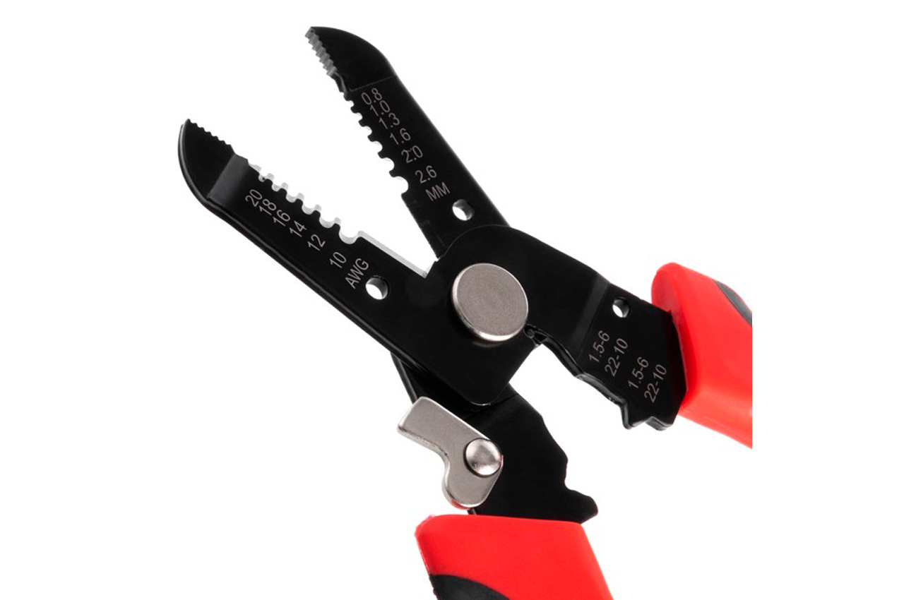 Знімач ізоляції або стрипер - це невід'ємний інструмент для електромонтерів та всіх майстрів, які працюють з дротами. Даним інструментом також можна різати дроти, скручувати петлі, обтискати клеми, утримувати деталі тощо. Стриппер виконаний з якісної легованої марганцевої сталі 65Mn, яка забезпечує високі експлуатаційні характеристики. Чорне оксидне покриття робочої частини для захисту від корозії. Знімач має текстуровані двокомпонентні ручки з гуми TPR, що запобігають ковзанню. Упори для пальців забезпечують кращий контроль у роботі та захищають від мимовільного дотику до металевої робочої частини. Також оснащений замком-затискачем для захисту користувача під час транспортування та зберігання.