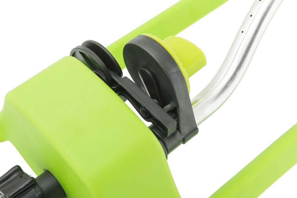 Осциляційний зрошувач з 18 форсунками та 4 режимами поливу забезпечує рівномірне та ефективне зрошення території площею від 110 до 220 м². Ідеально підходить для поливу газонів, грядок та клумб.