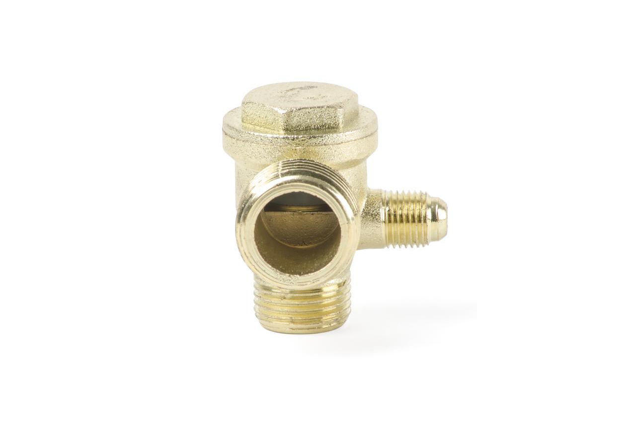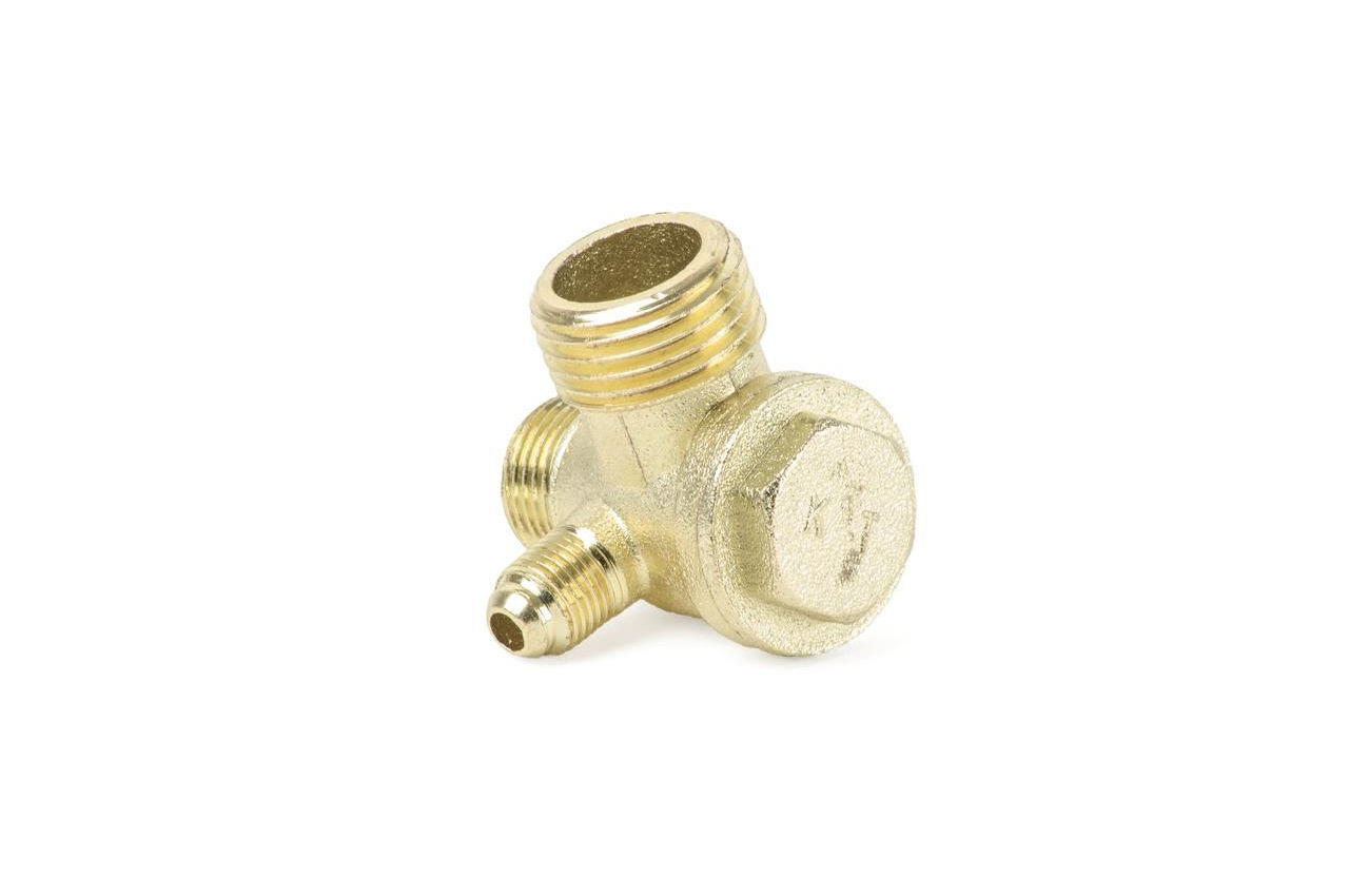 Зворотний клапан для компресора – це надійне рішення для забезпечення ефективної роботи компресорного обладнання. За його допомогою ви зможете запобігти пропусканню повітря з ресивера назад у циліндри, забезпечуючи стабільне та ефективне функціонування системи. Клапан легко встановлюється завдяки потрійній різьбі: 1/2" в ресивер, 3/8" до трубки подачі повітря з циліндрів, 1/8" до трубки розвантаження циліндрів. Сумісність: Компресори PT-0003, PT-0004, PT-0009