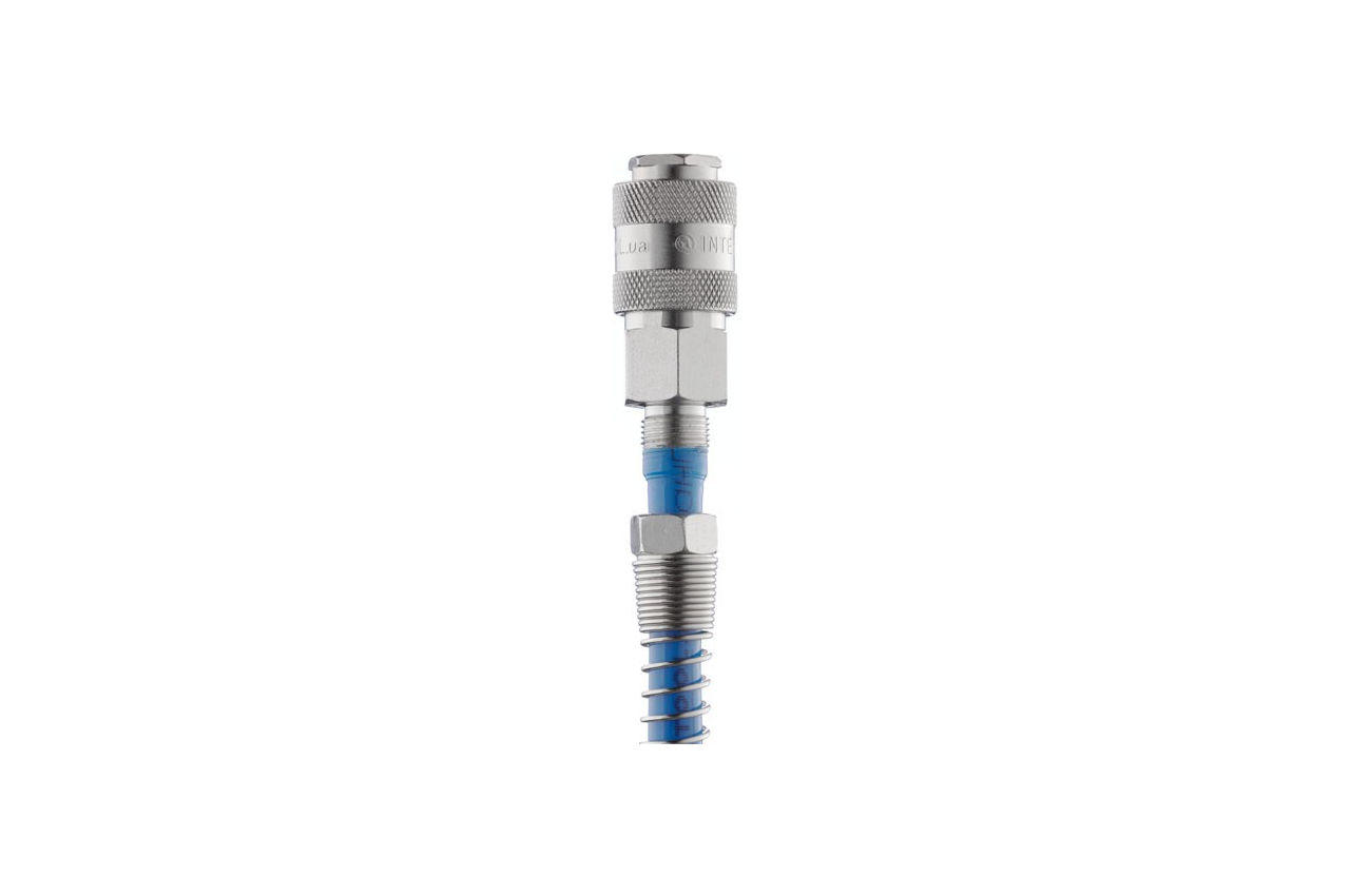 Швидкознімне з'єднання з пружиною PT-1830 використовується для установки на спіральні і прямі повітряні шланги, щоб забезпечити швидке підключення пневмоінструменту до компресора або повітряної магістралі. Також їх використовують для ремонту шлангів з ушкодженнями і для замінені вийшли з ладу конекторів. Особливості Пружина відмінно захищає шланг від перелому і залома в місці з'єднання, не знижуючи його рухливості. Шланг не пропускає повітря на місці стику завдяки надійній фіксації притискної гайкою. Повна відсутність пластикових деталей. Латунний сердечник і мателліческій корпус забезпечують максимальний час експлуатації коннектора. Простота конструкції дозволяє дуже легко і швидко встановити швидкороз'ємне з'єднання на шланг. Даний коннектор забезпечує надійне і міцне з'єднання з пневмоінструментом і підходить для поліуретанових, нейлонових і інших шлангів з внутрішнім діаметром 5-6 мм і зовнішнім діаметром 8 мм. Інструкція по установці на шланг 1. Одягніть на шланг частина коннектора (з пружиною і притискної гайкою) так, щоб гайка була ближче до краю. 2. Візьміть шланг і занурте його край в гарячу воду (по температурі близьку до кипіння) на кілька секунд. 3. Одягніть нагріте край шланга на конусний фіксатор, розташований на частині коннектора з клапаном. 4. Надійно з'єднайте першу і другу частину коннектора притискної гайкою. Інша: для шлангів: Ø внутрішній 5-6 мм, Ø зовнішній 8 мм; Сумісність: PT-1702, PT-1703 PT-1704, PT-1705, PT-1706, PT-1707 році, PT-1708 році, PT-1709 щоб гайка була ближче до краю. 2. Візьміть шланг і занурте його край в гарячу воду (по температурі близьку до кипіння) на кілька секунд. 3. Одягніть нагріте край шланга на конусний фіксатор, розташований на частині коннектора з клапаном. 4. Надійно з'єднайте першу і другу частину коннектора притискної гайкою. Інша: для шлангів: Ø внутрішній 5-6 мм, Ø зовнішній 8 мм; Сумісність: PT-1702, PT-1703 PT-1704, PT-1705, PT-1706, PT-1707 році, PT-1708 році, PT-1709 щоб гайка була ближче до краю. 2. Візьміть шланг і занурте його край в гарячу воду (по температурі близьку до кипіння) на кілька секунд. 3. Одягніть нагріте край шланга на конусний фіксатор, розташований на частині коннектора з клапаном. 4. Надійно з'єднайте першу і другу частину коннектора притискної гайкою. Інша: для шлангів: Ø внутрішній 5-6 мм, Ø зовнішній 8 мм; Сумісність: PT-1702, PT-1703 PT-1704, PT-1705, PT-1706, PT-1707 році, PT-1708 році, PT-1709