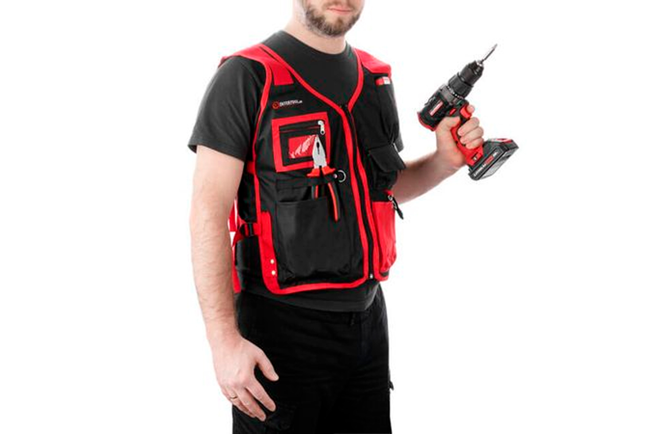 Призначений для носіння ручного інструменту і дрібних деталей в ньому. У цьому жилеті є 7 кишень для носіння інструменту. На жилеті є гумові утримувачі для носіння викруток та іншого ручного подовженого інструменту. Жилет виконаний з високоміцної тканини - поліестеру, внутрішня підкладка жилета зроблена з нейлонової сітки. Наявність регулюють бічних замків дозволяє підігнати жилет під необхідний розмір. Кількість кишень: 7
